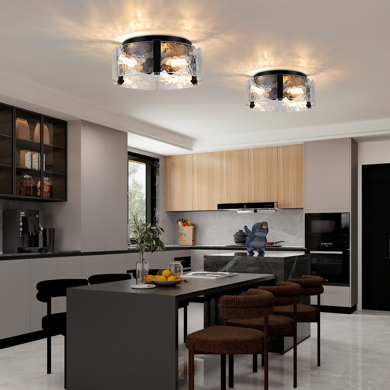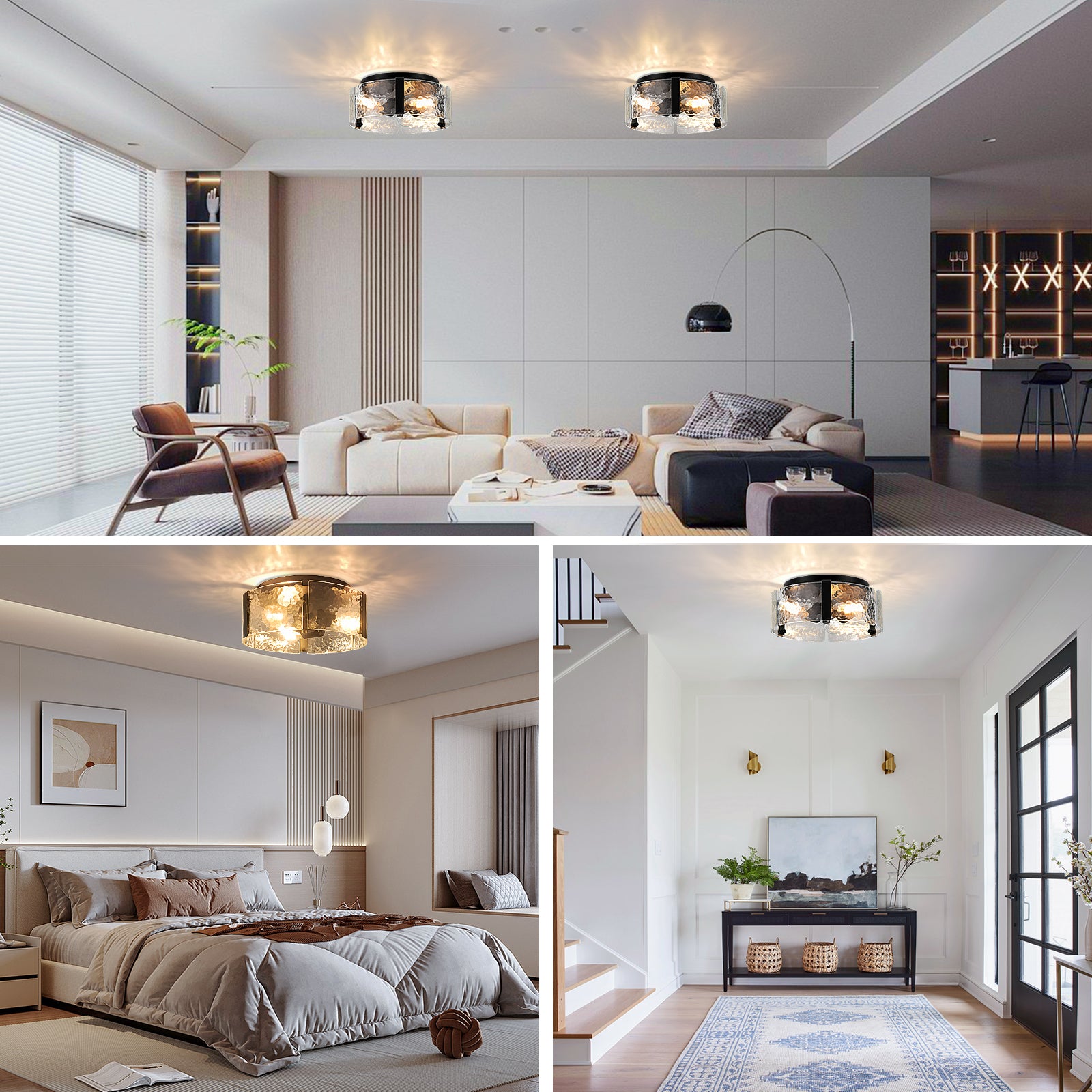 ✅【MODERN SEMI-FLUSH MOUNT DESIGN】This black semi flush mount ceiling light fixture is made of high-quality metal and a elegant water ripple glass shade, the glass ceiling light adopts excellent baking varnish process, outstanding oxidation resistance, hard to rust. Fine workmanship, durable in use. The 3 light sources become bright, soft and comfortable under the reflection of the water ripple glass, presenting a warm dining atmosphere. The close to ceiling light fixture complement any décor from industrial to farmhouse adding modern touch to your space.