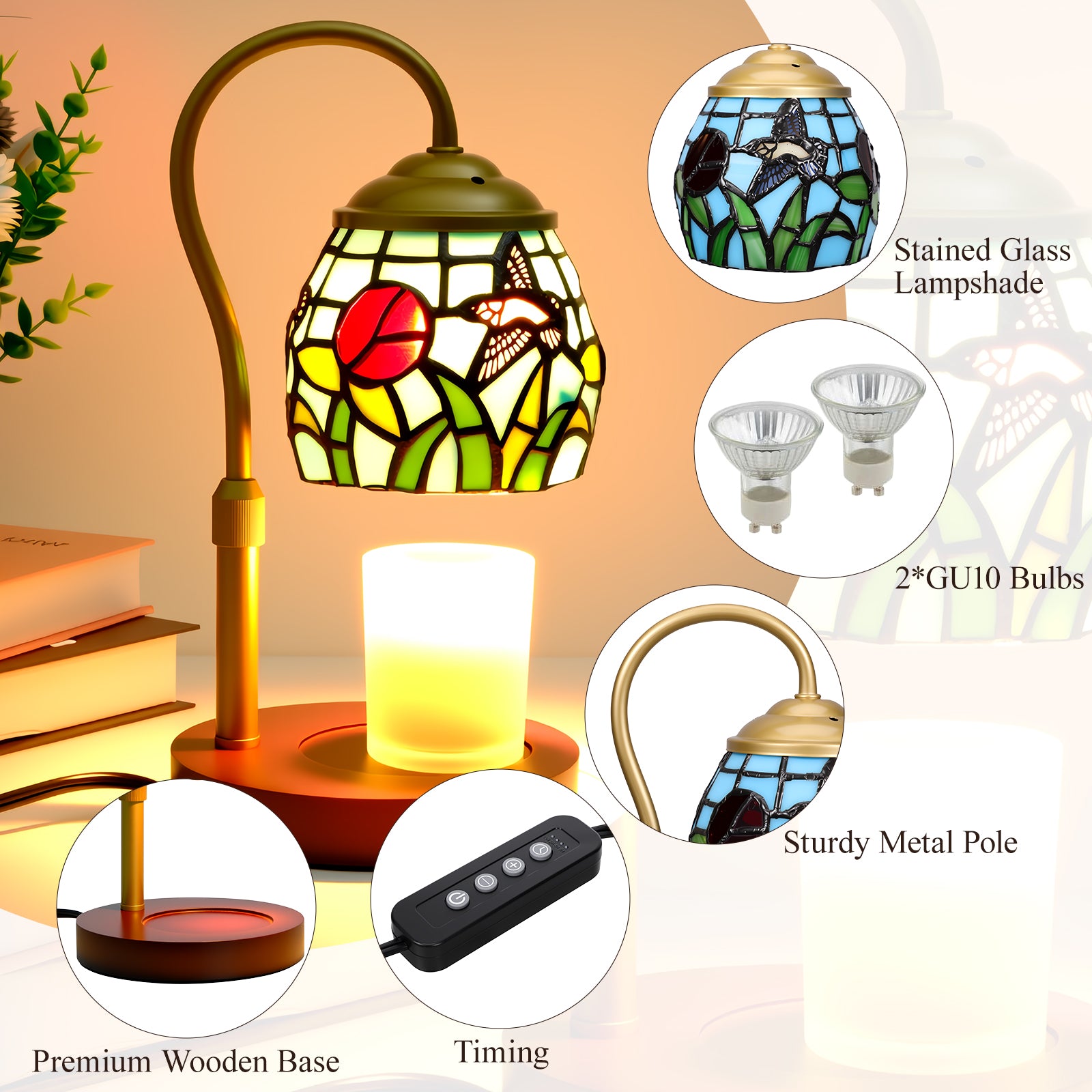 Vintage Home Deco: Our retro wax tiffany style warmer lamp is a stylish combination of wooden base and the unique stained glass shade, elegant hummingbird & flower design and handcrafted with stained glass cuts to make each one a unique work of art, make this a perfect art home deco piece to enhance the beauty of your home. When you turn on the lamp, the warmth of the light and the stained glass reflect each other beautifully
