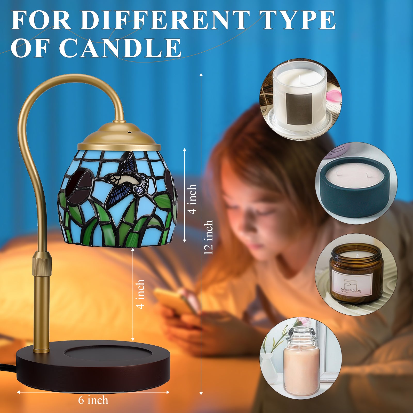 Eco-Friendly & Flameless Safety: Our tiffany style candle warmer lamp uses a gentle 50-watt bulb (included) to melt wax evenly—no open flame, smoke, or soot. Candle warmer lamp releases the full fragrance of scented candles. This stained glass candle lamp warmer Ideal for eco-conscious homes with children or pets, this candle warmer offers a safer, cleaner, and more efficient alternative to traditional candle burning