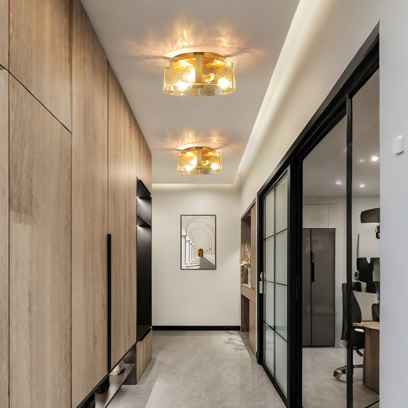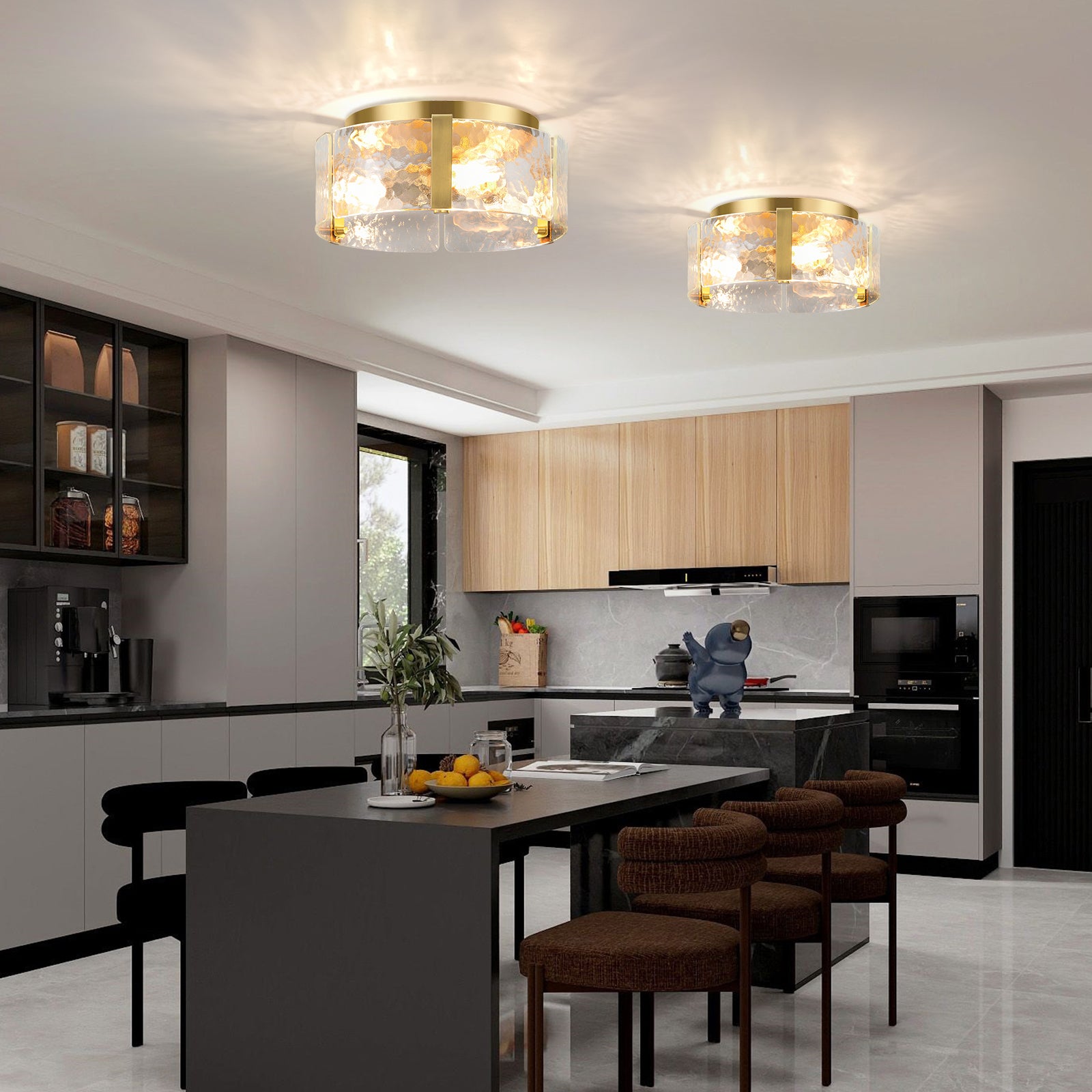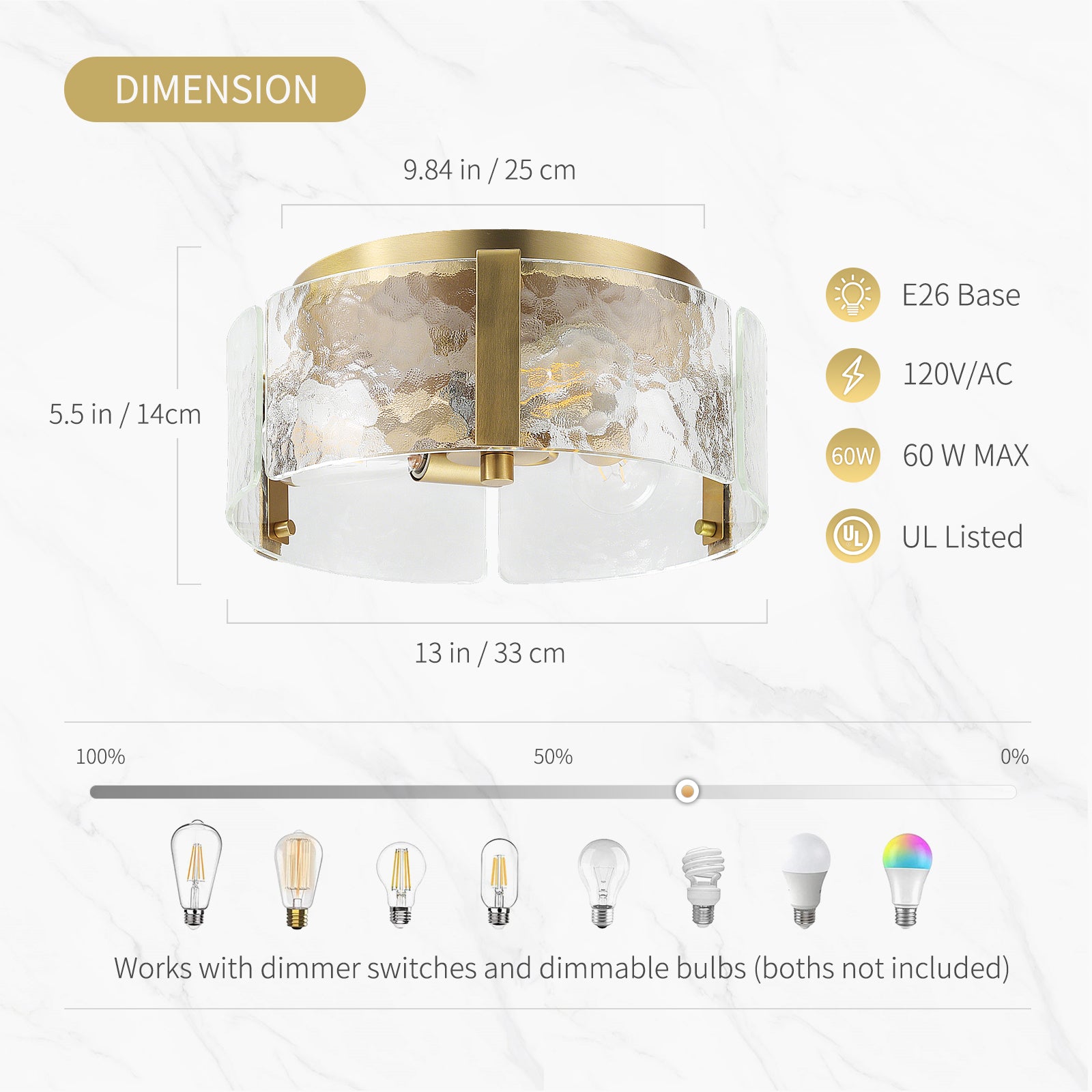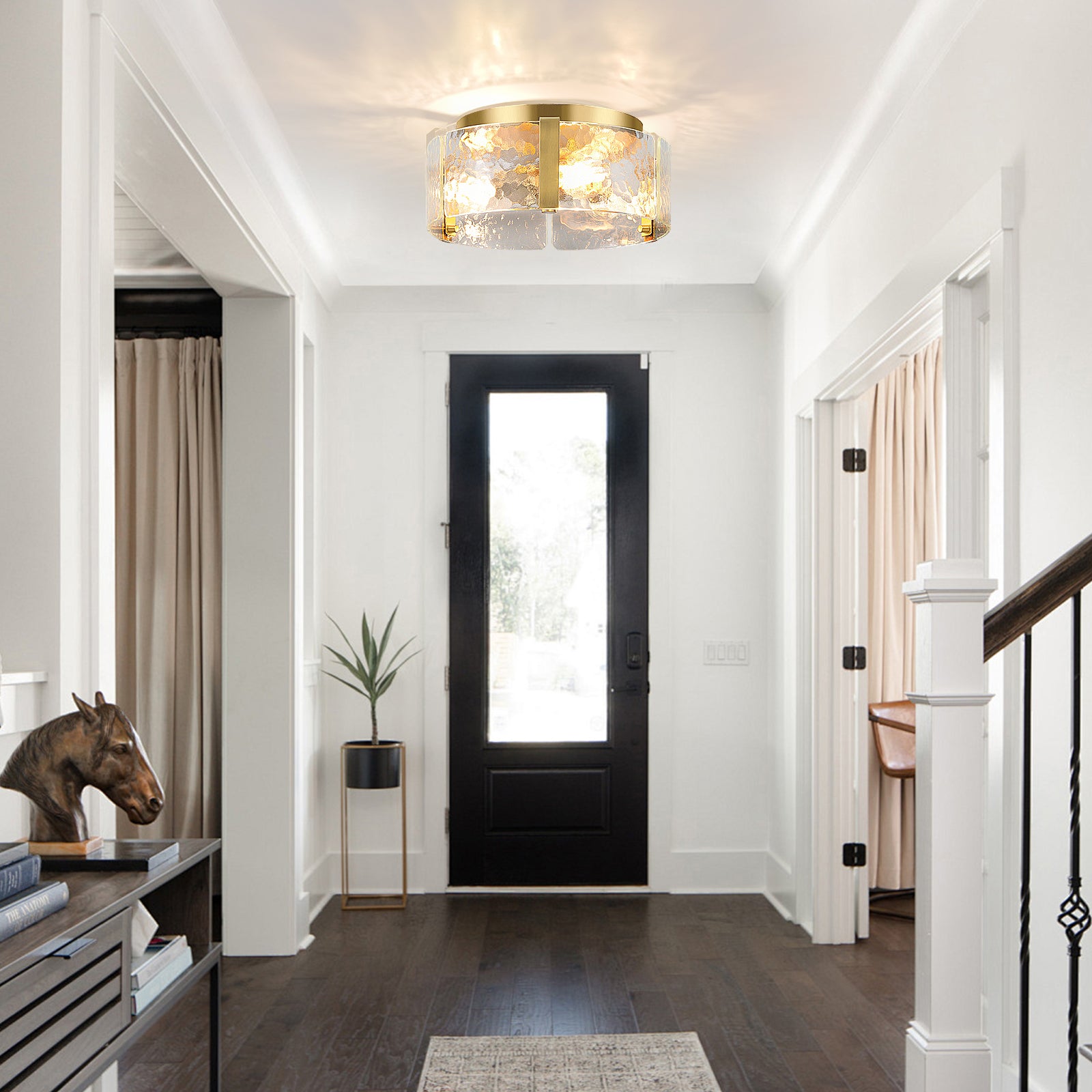 ✅【MODERN SEMI-FLUSH MOUNT DESIGN】This gold semi flush mount ceiling light fixture is made of high-quality metal and thciken elegant water ripple glass shade, the glass ceiling light adopts excellent baking varnish process, outstanding oxidation resistance, hard to rust. Fine workmanship, durable in use. The 3 light sources become bright, soft and comfortable under the reflection of the water ripple glass, presenting a warm dining atmosphere. The close to ceiling light fixture complement any décor from industrial to farmhouse adding modern touch to your space.