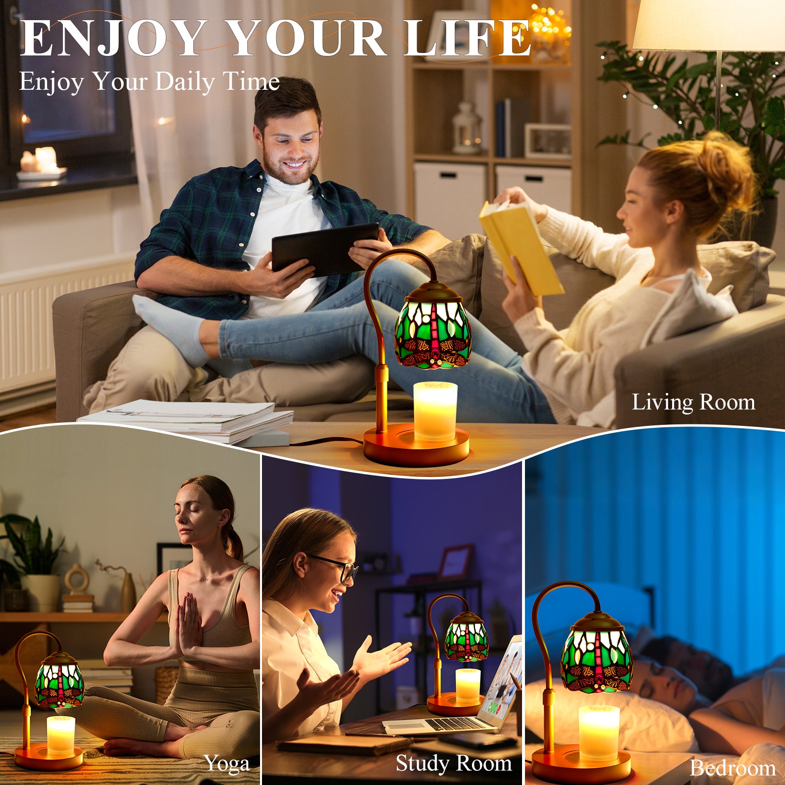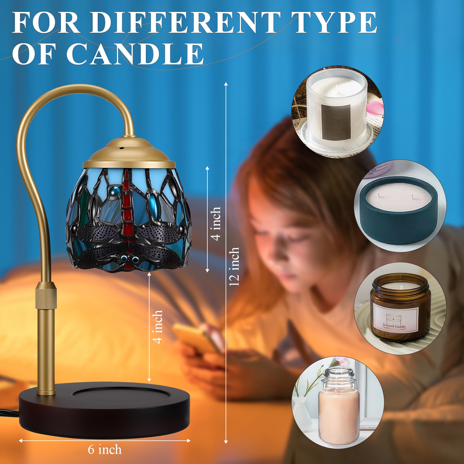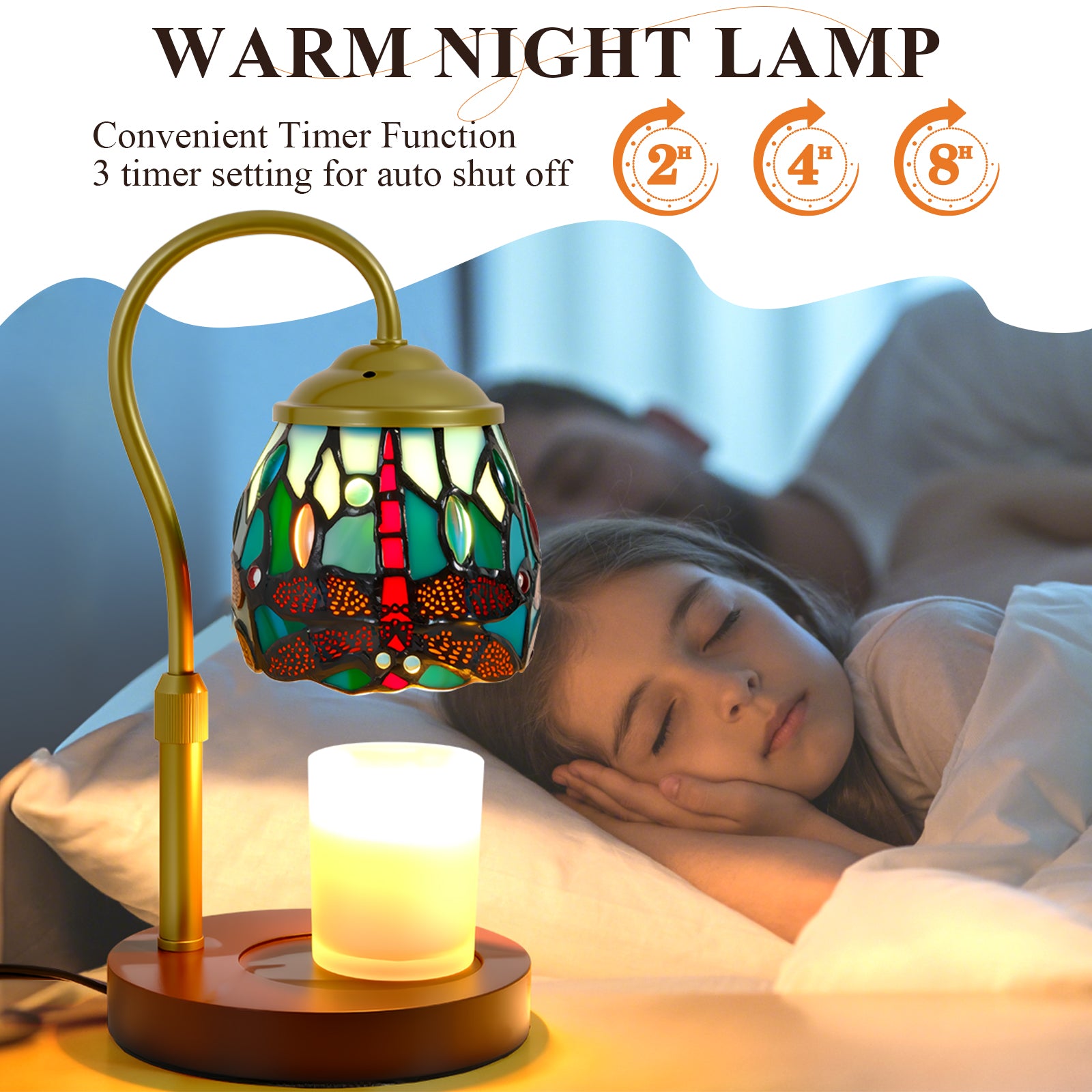 Eco-Friendly & Flameless Safety: Our tiffany style candle warmer lamp uses a gentle 50-watt bulb (included) to melt wax evenly—no open flame, smoke, or soot. Candle warmer lamp releases the full fragrance of scented candles. This stained glass candle lamp warmer Ideal for eco-conscious homes with children or pets, this candle warmer offers a safer, cleaner, and more efficient alternative to traditional candle burning