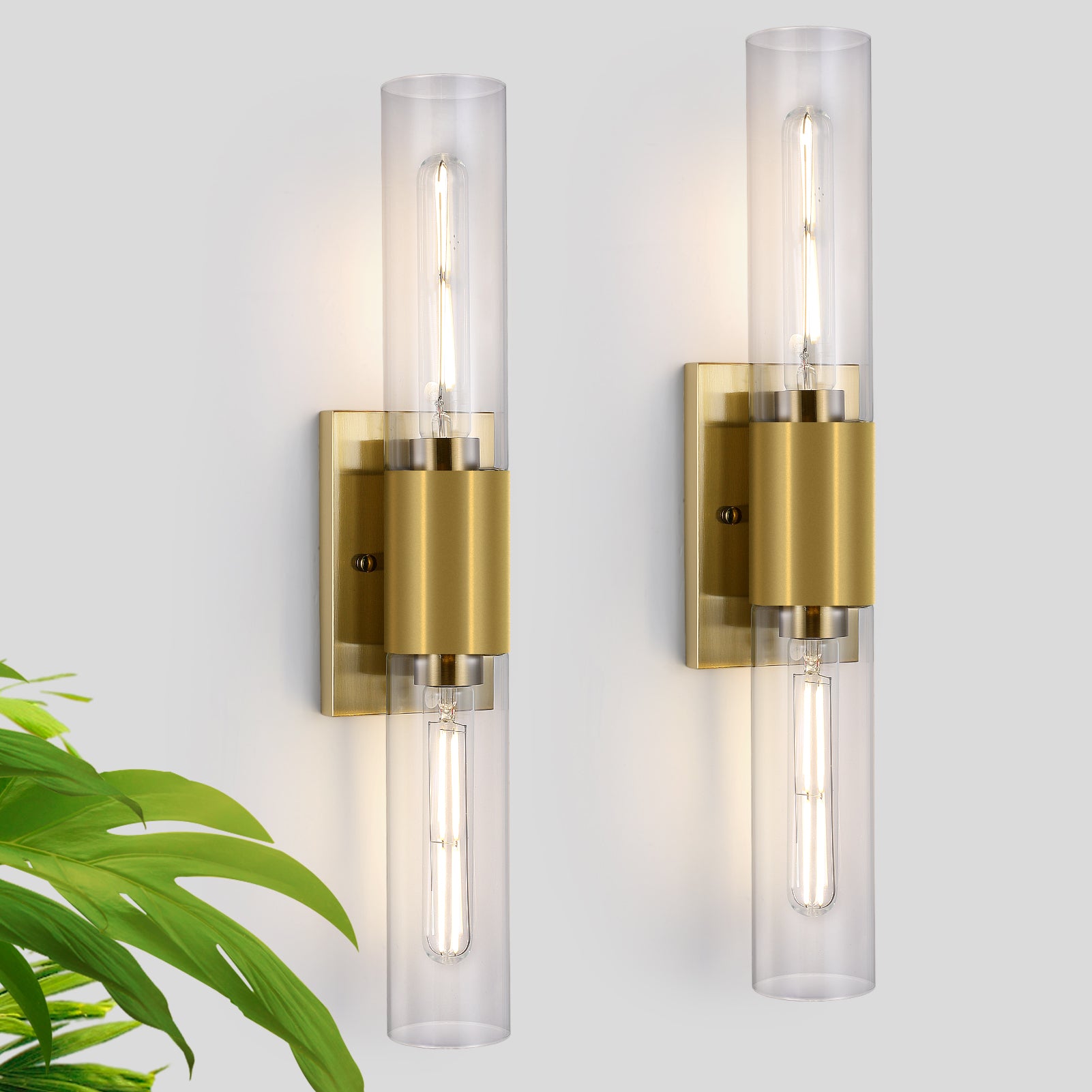 【Ideal Dimensions for Versatile Placement】 – The bathroom wall sconces with a total fixture length of 21 inches and a backplate measuring 4.3"L x 7"H, this modern wall sconce provides balanced illumination without overwhelming your space. The 2x8.5-inch-long glass shades (2.7" diameter) distribute light beautifully, making it an excellent choice for vanity mirrors, bathroom walls, or hallway accent lighting