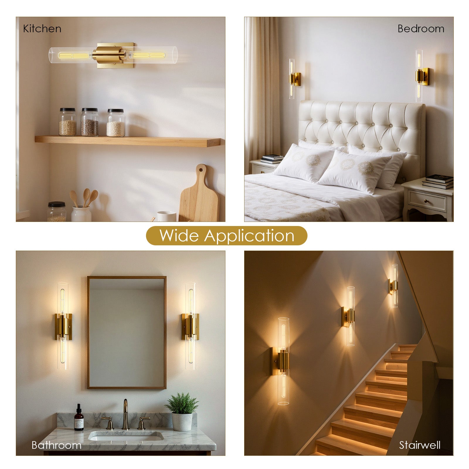 【Premium Quality & Durability】 – Built to last, this bathroom sconce lights features high-grade E26 ceramic sockets with a porcelain-enameled finish for superior heat resistance and extended longevity. The gold wall sconce sturdy metal backplate and thick glass shades ensure reliable performance and a refined aesthetic