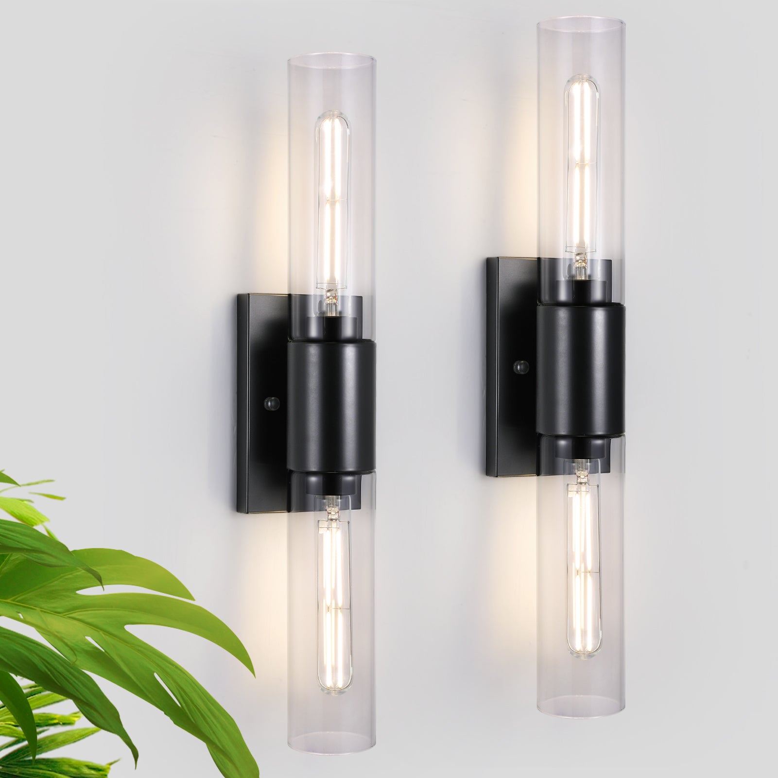 【Timeless Design for Any Space】 – With a minimalist black frame and transparent glass shades, these wall sconces set of two blend seamlessly into modern, farmhouse, or industrial interiors. Ideal for bathroom vanity light applications, entryways, hallway illumination, as decorative wall lamps for bedroom settings, or even as stylish bathroom light fixtures beside mirrors for a polished look