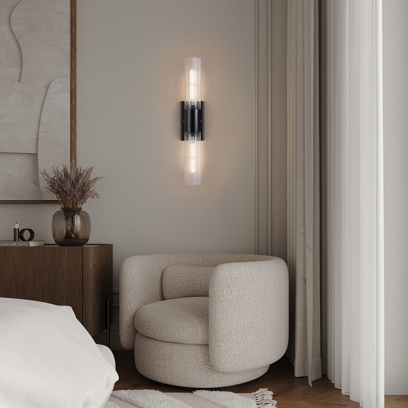 🔶 Durable Iron + Glass Options – Clear or Ribbed for Style: Crafted from heavy-duty iron and high-quality glass, these sconces wall lighting fixtures are built to last. Choose between crystal-clear glass or elegant ribbed glass shades to match your personal style. The timeless black finish blends seamlessly with modern interiors, making it ideal for bathroom wall sconces, bedroom sconces set of 2, and black wall sconces set of two.