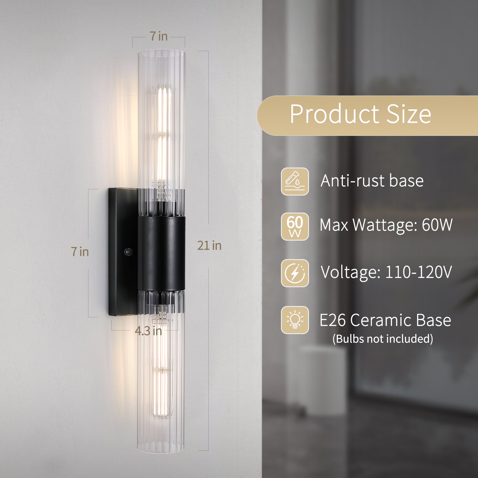 🔶 Hardwired Wall Mount – Hassle-Free Installation: Designed for easy installation, this wall mount light fixture indoor connects directly to your junction box. Comes with a standard 4.3"×7" base for quick setup. Whether you're refreshing your vanity with bathroom wall sconce lighting or upgrading black vanity light features, installation is smooth and secure.