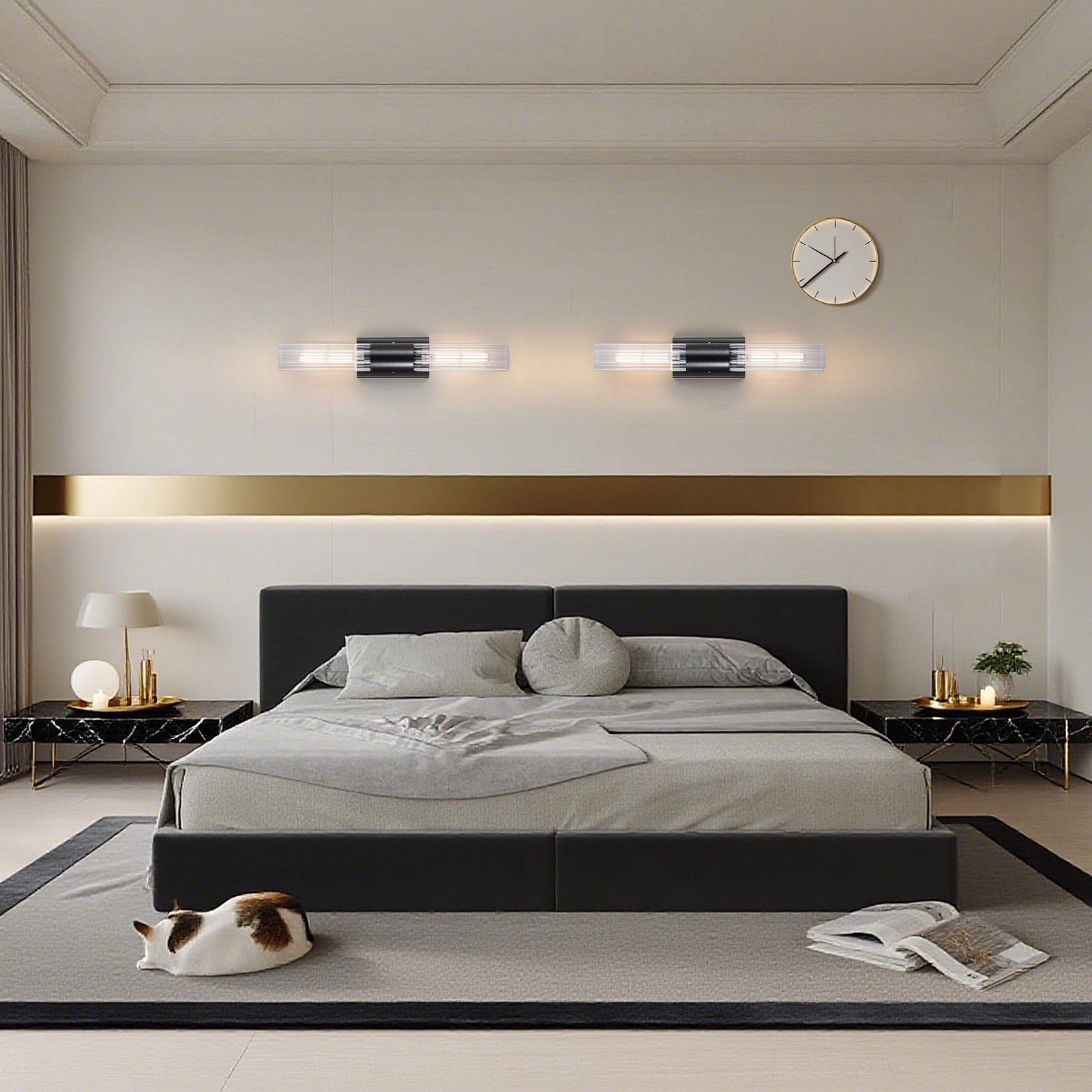 🔶 Modern Wall Sconces Set of 2 – Stylish Black Finish: Upgrade your space with this elegant wall sconce hardwired set. Featuring a sleek black finish with clear glass shades, these modern wall sconces add luxury and sophistication to any room. Perfect for those seeking black bathroom decor, bedroom wall sconces, or black home decor accents.