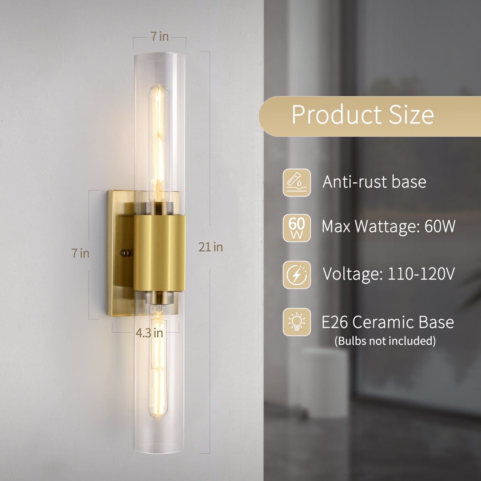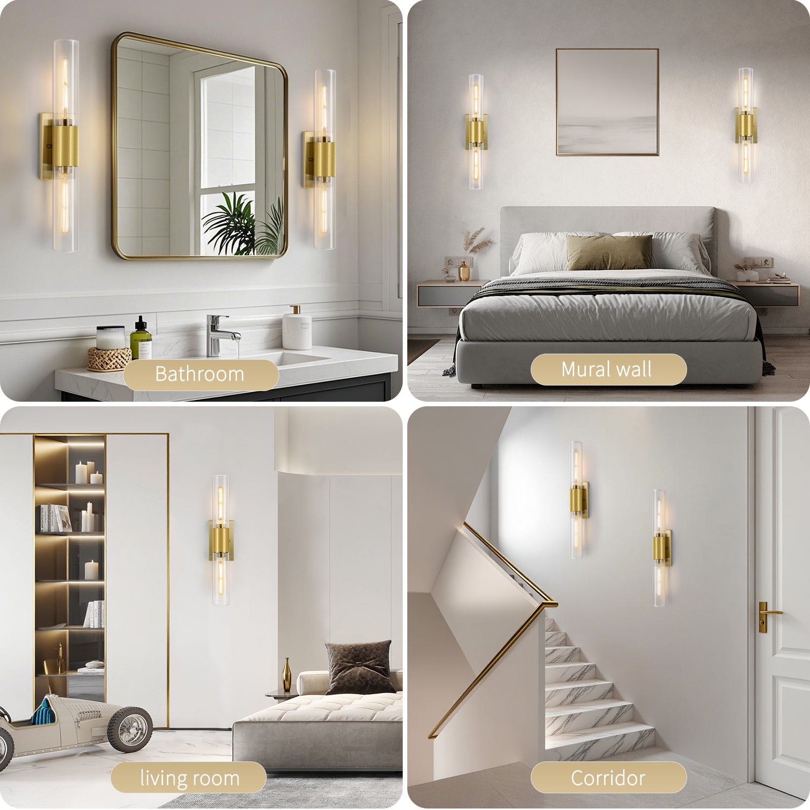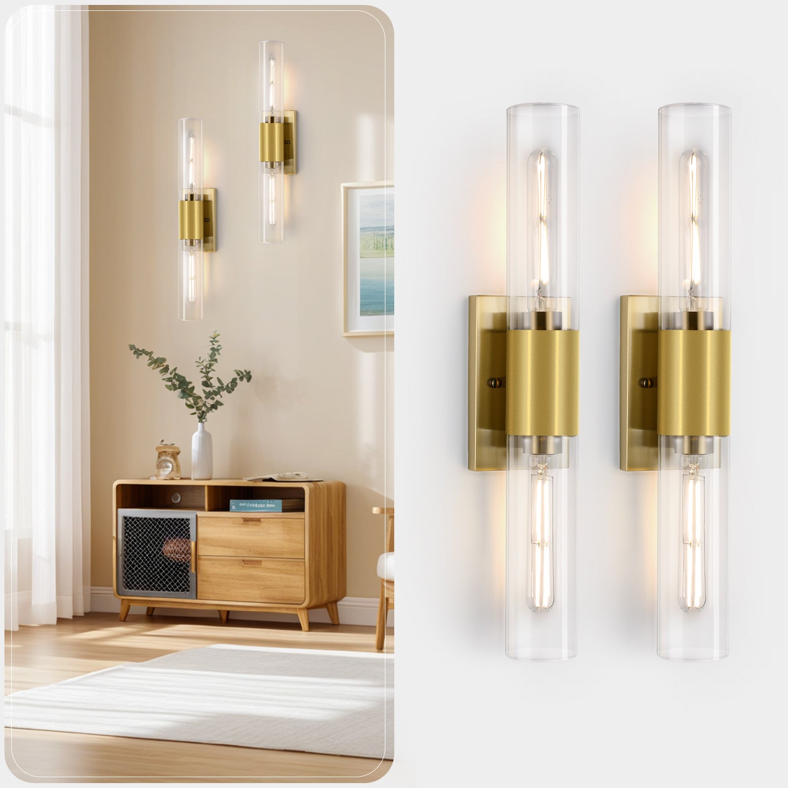 XIFEINIU Wall Sconces Set of Two - Gold Bathroom Sconces Wall Lighting with Clear Glass Wall Lighting Fixtures Mounted Lamps for Bedroom, Bathroom, Living Room, Hallway (Gold Clear)