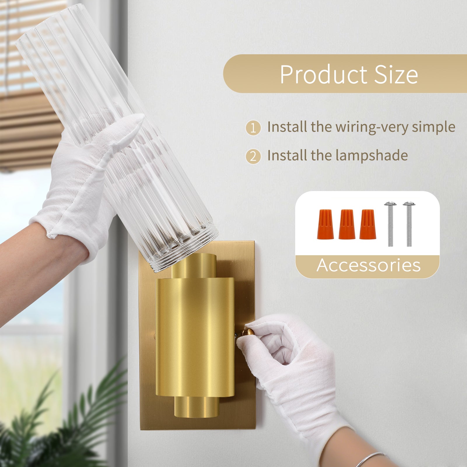 🔶 Durable Iron + Glass Options – Clear or Ribbed for Style: Crafted from heavy-duty iron and high-quality glass, these sconces wall lighting fixtures are built to last. Choose between crystal-clear glass or elegant ribbed glass shades to match your personal style. The timeless gold finish blends seamlessly with modern interiors, making it ideal for bathroom wall sconces, bedroom sconces set of 2, and gold wall sconces set of two.